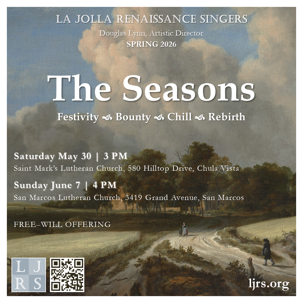 As the season of renewal approaches, the La Jolla Renaissance Singers invite you to join us for our 2026 Spring Concerts.